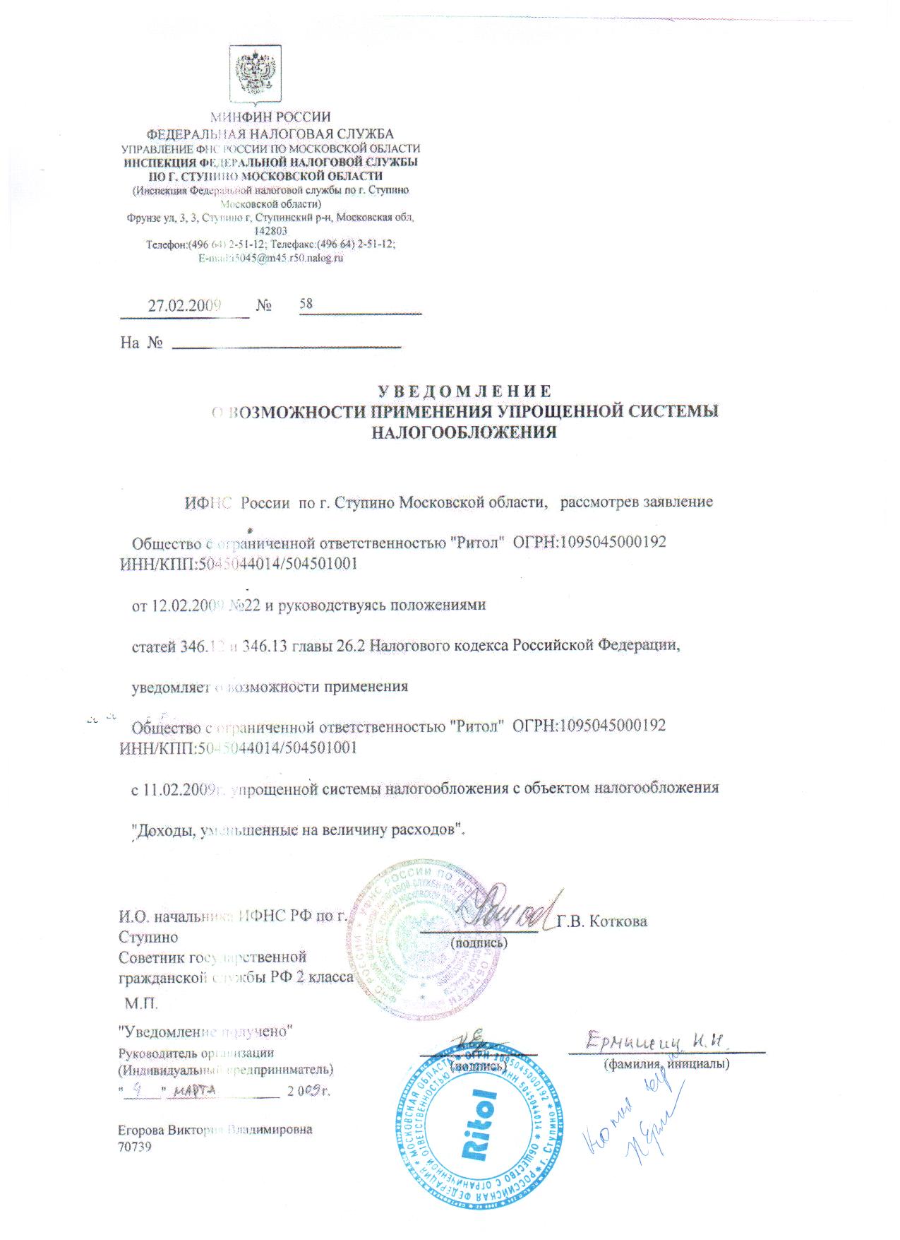 В случае оплаты оргвзноса юридическим лицом, вашей организации необходимо заключить договор с ООО "Ритол". Шаблон Договора с юридическим лицом и акта о выполненных услугах необходимо заполнить, вписав в него данные вашей организации (заполнить поля отмеченные красным шрифтом), распечатать, подписать и поставить печать. Скачать счет на оплату оргвзносов (шаблон счета здесь). Заполнить поля отмеченные красным шрифтом. В связи с тем, что ООО "Ритол" освобождается от налога на добавленную стоимость на основании статей 346.11, 346.12 и 346.13 главы 26.2 Налогового кодекса РФ, к пакету документов необходимо приложить Уведомление о возможности применения упрощенной системы налогообложения №22 от 12.02.2009г (скачать здесь). Данный комплект отдать в бухгалтерию на оплату.